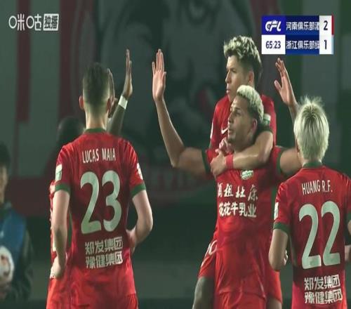 河南队本轮则坐镇主场迎战浙江队,本场比赛虽然与争冠、保级都无关,但也仍旧非常精彩。上半场第18分钟,河南队反击直接杀到禁区,卡多索的射门被门将扑出,然而皮球却恰巧打在了高速回放的李提香身上后反弹入网,河南队1-0打破僵局,随后双方展开高节奏的攻防大战但未能再改写比分,上半场河南队1-0领先。