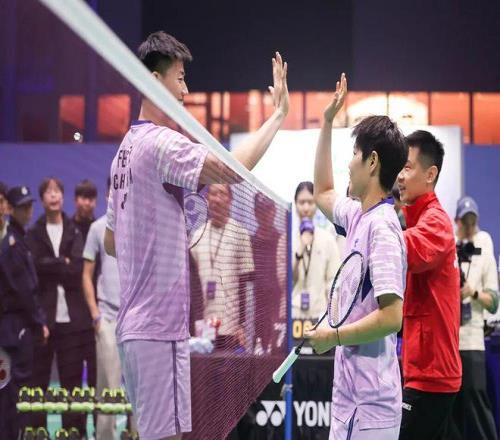 昨天晚上的I SMASH球馆被装点在一片亮眼的紫色中,当风尘仆仆从法国回国的“凤凰”组合身穿国羽当季的紫色比赛服登场时,来自全国各地60余名球友送上一阵欢呼。“凤凰”分享道,在欧洲三站比赛锻炼了他们的能力,更磨练了他们对彼此的信任。“在芬兰站比赛失利后,我们有了一个很深度的聊天,这帮助我们更加了解和信任彼此,也给后面两站有很大的帮助。要感谢一路支持和顶着时差观看比赛的球迷朋友们。”