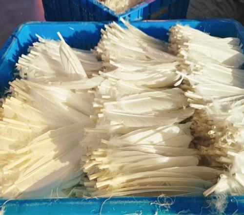 谈及上游鹅毛原料的使用,杨讯芳则告诉记者,厂里采用皖西白鹅的鹅毛作为原料的比例不足5%,其他的都来自东北等地。杨讯芳为记者举例:以平均1个月生产10万~20万打羽球来算,一打羽球共需要196根羽毛,但一只鹅身上有13~14根羽毛可用来做球,“以现有本地养殖情况,未必能全部供应得上”。