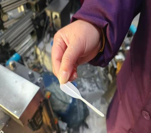 由于代工了多个型号的羽球,厂里还逐步投放了智慧化、数字化的切片、拣片设备。比如,厂里有48组(台)正在运行的切片设备,可以在设定的参数下自动分选出羽毛的等级,提升了羽毛品质的稳定性,也节省了2/3的人力成本,厂里还在与高校一同研发AI技术下的智能分选系统。再如,拣片设备则可以一边分拣出不同型号的羽毛球片,一边在屏幕上展示羽毛球片长度、大小,精确到毫米,“这是一项结合了老师傅经验与智能系统的工作”。