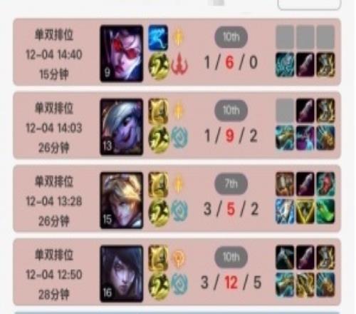 体育资讯12月5日称 根据排位统计小程序显示,Uzi昨日中午登上韩服账号,但是战绩不佳,连续四把排位均落败,战绩惨淡。
