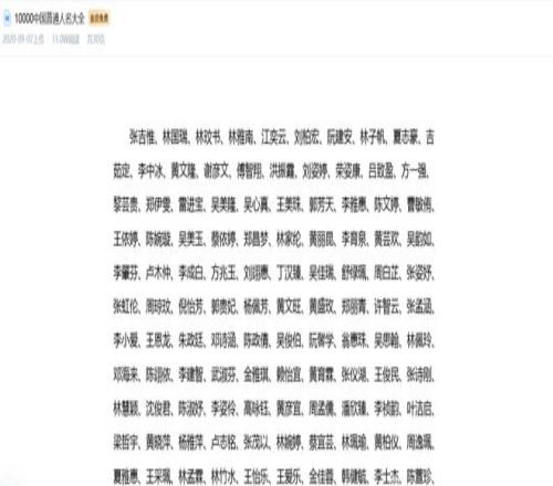 “张吉惟、林国瑞、林玟书、林雅南、江奕云”……这5个名字因出现在中国政府采购网12月3日公布的《竹溪县住房和城乡建设局本级机械设备租赁采购中标(成交)结果公告》第五项评审小组成员名单中,而被舆论熟知。但事实上,这5个名字均出自某平台文库《10000中国普通人名大全》(下称《人名大全》)文档,且位列前5位。