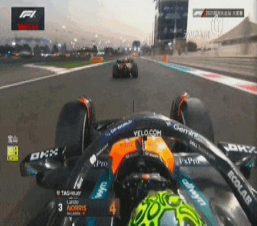 随着五盏红灯熄灭,2025赛季F1收官站——阿布扎比站正赛正式开始!维斯塔潘切线起步,相当干脆的稳住自己的领先位置!随后令人意外的是,白胎起步的皮亚斯特里竟然在9号弯从外线超越黄胎起步的诺里斯来到第二,让诺里斯去到了第三名的位置。
