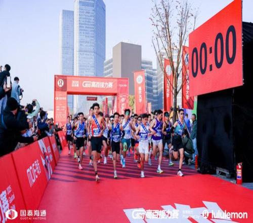 此外,合作伙伴的助力也让赛事更加贴近高校学生。这是赛事与lululemon在第八届进博会官宣战略合作之后的首个落地活动赛事,品牌不仅准备了包含人气跑步产品的赛事包,还特别打造了互动体验区设置“校际极速跑”、“弹力拔河赛”、“接力棒平衡”等趣味游戏,吸引了数百名大学生参与。许多观众和刚下赛道的跑者纷纷在体验区入口处的“跑者能量墙”驻足留言,分享跑步的快乐与心得。