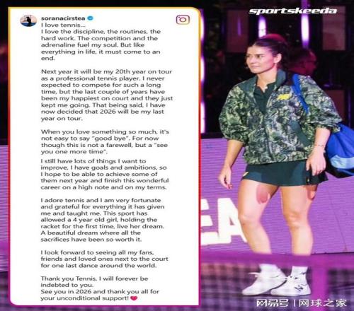 上周,罗马尼亚网球名将索拉娜·科斯蒂亚宣布将在2026赛季结束后正式挂拍,结束长达二十年的职业生涯。宣布这一决定之后,她在加西亚创办的“Tennis Insider Club”中与加西亚进行了一次长时间、坦诚布公的长谈,涉及到她的职业生涯、生涯中的遗憾和教训。