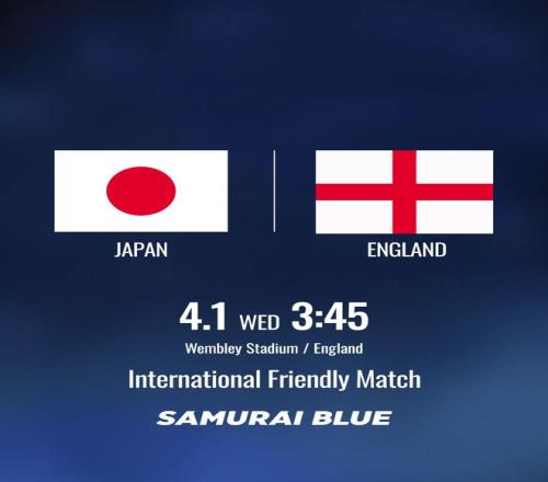 日本国家队官方确认,明年4月1日他们将会在温布利大球场与英格兰进行一场友谊赛。