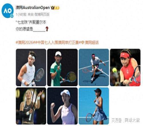 七人进入澳网单打正赛签表,澳网官方在第一时间送上祝福之际,也给中国七人团取了一个相当吉利的名字——七龙珠。